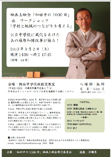 映画「和田中の1000日」は、その藤原校長が在任中の和田中の記録です。