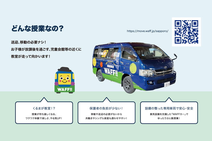 以下より、移動型教室WAFF!! についての詳細と、稼働前のお知らせ事前登録ができます。