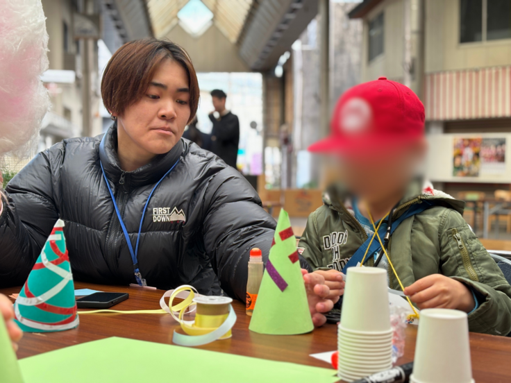 「クリスマスとSDGs」をテーマに掲げ、処分するしかないチョーク粉を使ってチョークの再制作を指導してくれたり、ペットボトルを再利用した工作やゲームなどを企画してくれました。