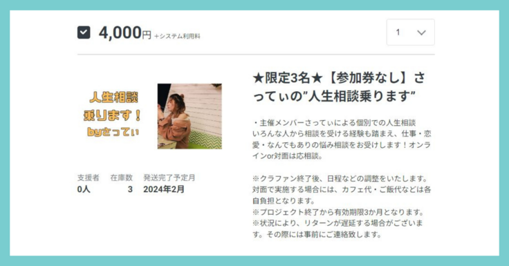 ※状況により、リターンが遅延する場合がございます。その際には事前にご連絡致します。