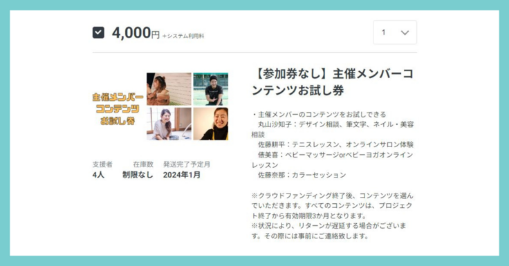 ・「夢タイムカプセル」企画に参加可能(支援完了後、メール等にて「あなたの夢」をメッセージで回収させていただきます)