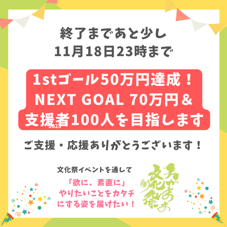 そして、「支援がまだだった!」「さらに追加で支援するよ!」という方は、11月18日23時までにご支援よろしくお願いいたします!お待ちしております✨