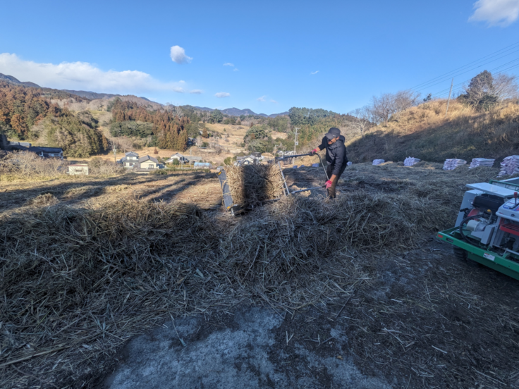 この後の土壌改良の邪魔になってしまうので、畑の外に持ち出す必要があります。