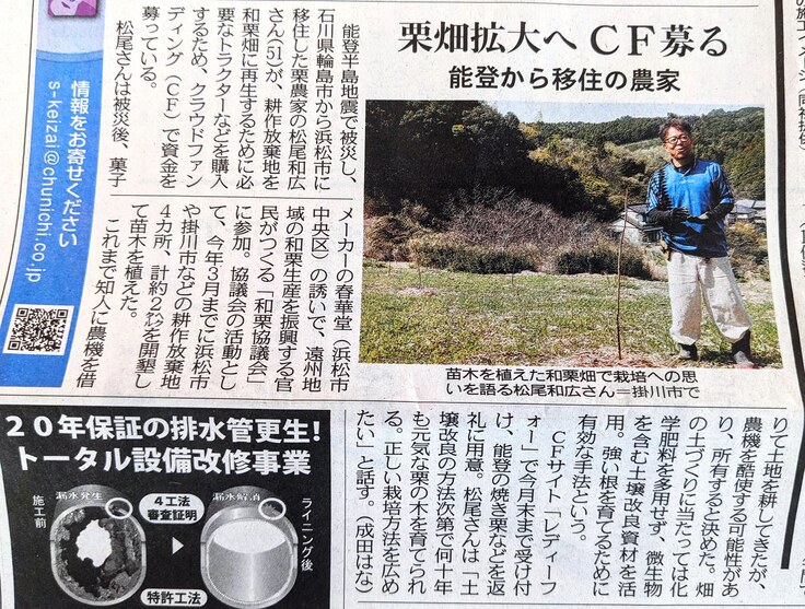 【残り39時間】テレビ静岡と中日新聞が松尾栗園クラウドファンディングの活動を取材してくださいました。