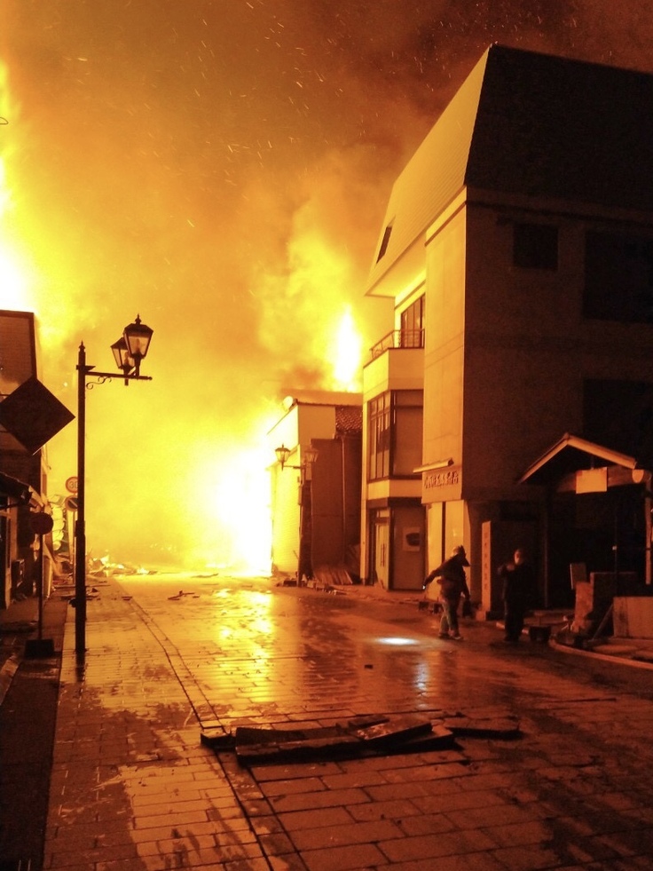 夜7時頃に父から電話があり、朝市近くで火事が発生したがうちからは離れているので大丈夫だと言っていましたが、余震が続く中、夜10時前頃、再び父から電話がありました。