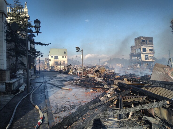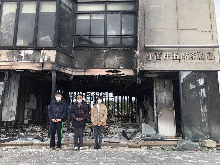 このたびの地震による大規模火災で、店舗や自宅、工房、土蔵、営業車が全焼し、甚大な被害を受けました。