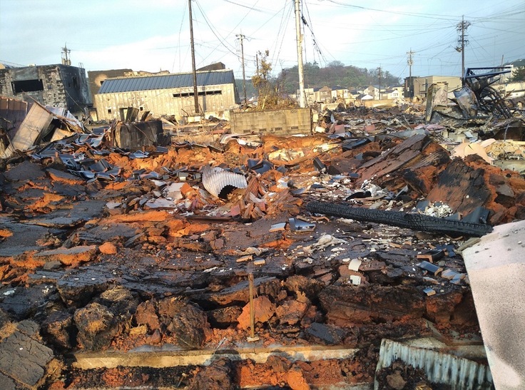 揺れが収まって子供を抱えて外に出ると、瓦礫や亀裂で道路が寸断され、孤立状態であることが分かりました。朝市の実家にいた父に電話を掛けると、津波が心配ですぐに避難所へ向かったとのことで一安心しました。