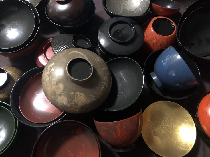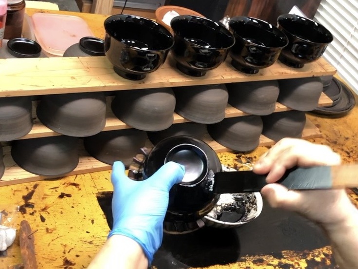 ↑当店定番の汁椀「つぼみ椀」輪島塗の工程を半分くらい過ぎたところ。