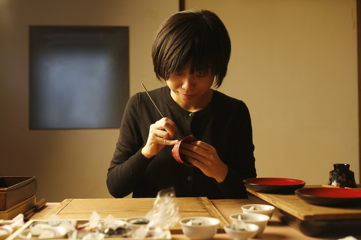 私や父の仕事は塗師屋(ぬしや)と言って、お客様のご注文や自分たちの企画した木地の図面を作って木地師さんに相談するところから始まります。どんなふうに仕上げたいかを各工程の職人さん達と共有しながら作り進めて、完成させた塗り物をお客様にお届けする・提案するというプロデューサー的存在です。