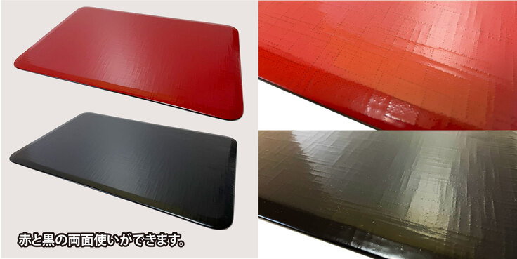 布目が特徴です。赤と黒の両面使いができます。傷がつきにくく実用向けの商品です。縦33cm×横45.5cm×厚さ1cm。