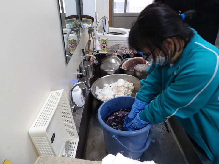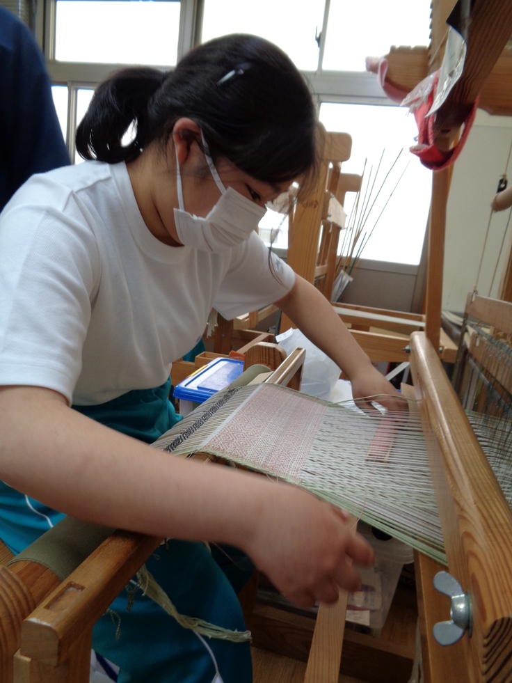 また、農園芸コースと連携して染料となる植物を栽培するなど、活動の幅を広げ、物を育てることの楽しさや、働くことの喜びを学習に取り入れています。染織デザインコースでは、新しい製品のデザイン開発にも力を入れることで、芸術的センスを磨く土台を作り上げていく役割も担っています。