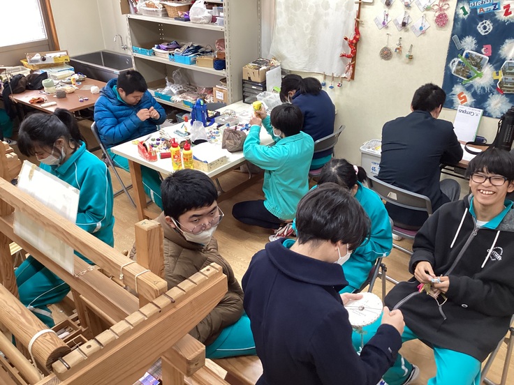 作業の特徴は、機織り、染め、ビーズアクセサリー作り等を通して、繰り返しや継続して1つのものを作り上げていくことです。その中で個々の特性や得意な面を技術に反映しながら、多くのことができるようになります。