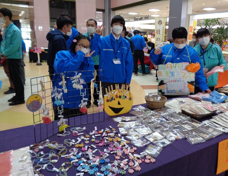 若葉高等学園では子供たちの学習の成果の発表の場、教育活動の一環として「生き生きフェア」という販売活動を年3回大型ショッピングセンターのフロアの一部をお借りして行っています。
