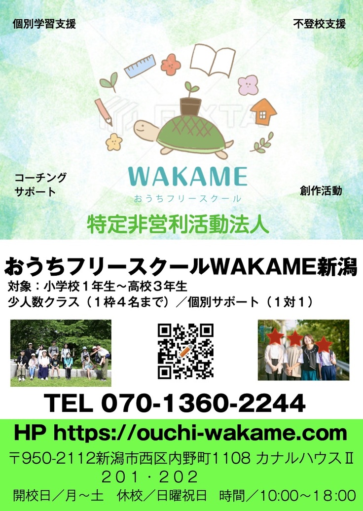 おうちフリースクールWAKAME新潟の代表、藤枝です。