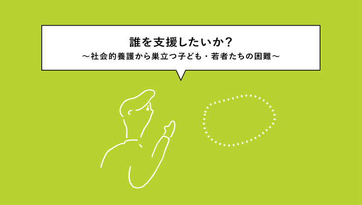 社会的養護のもとで育った子ども・若者たちが抱える困難。そのおおもとにある原因は、彼/彼女ら自身に問題があって生まれたものではありません。そもそも人は、自分ひとりの力で生きられるものでもありません。しかし、頼ることのできる身近な大人がいない子ども・若者たちが、この日本の社会にもたくさんいます。