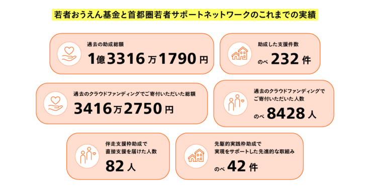 ※本プロジェクトは、期日までに集まった寄付/支援総額に応じて、実行内容及びその規模を決定します。 首都圏若者サポートネットワークの助成金の給付や支援の実態調査・研究につきましては、クラウドファンディング以外のご支援金を補填するなどして実行いたします。