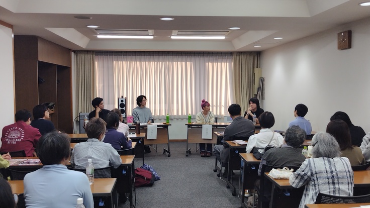19日は生活クラブ神奈川の協力で新横浜にあるオルタナティブ生活館で開催しました。冒頭山本昌子監督にご挨拶をいただき上映会後、フェアスタートサポート永岡鉄平代表をゲストに迎えトークセッションを開始しました。参加者が少なかったので感想シェアの時間を長くし対話を通して深く考える機会になりました。
