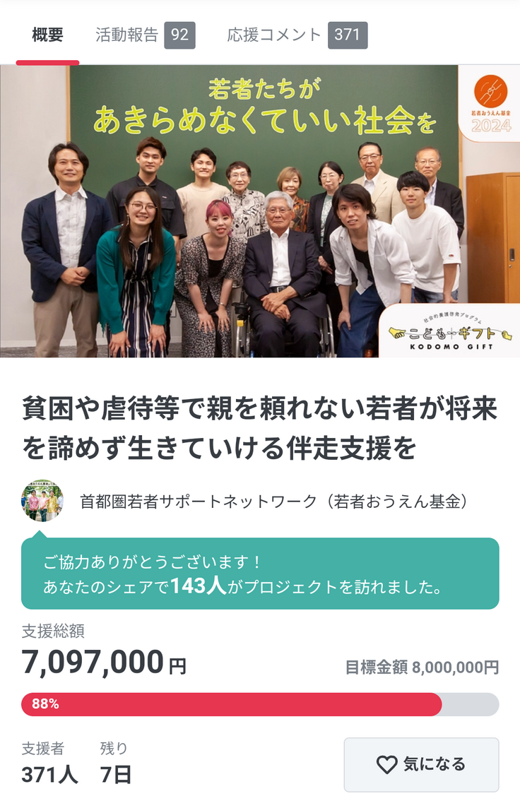 若者おうえん基金クラウドファンディングへのご支援誠にありがとうございます。