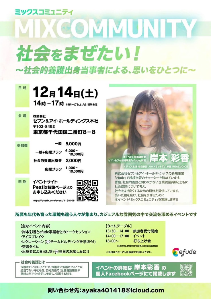 ご参加いただいた岸本彩香さんにはご自身が主催されている12月14日のイベント『MIXCOMMUNITY』についてご紹介いただきました。
