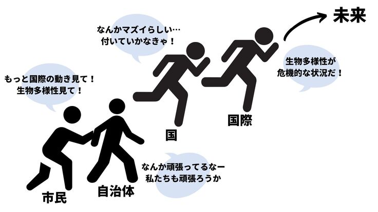 国際の情報を自治体に届けることで、生物多様性の重要性を伝えることができ、生物多様性を無視できなくなります。それによってより生物多様性に配慮された街づくりが実現されていくと思います