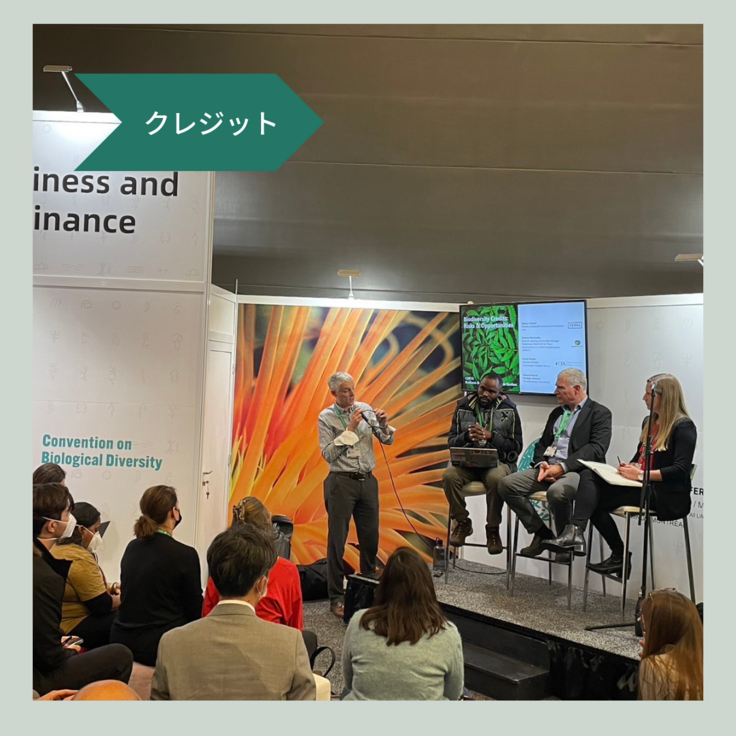 一つ目は、「Biodiversity Credits: Risks and Opportunities」という題の、生物多様性分野のクレジットの可能性についてのパネルディスカッションでした。気候変動分野ではカーボンクレジット(温室効果ガスの削減効果を排出権として売買する制度)が進み、市場価値が認識されるようになってきていますが、生物多様性分野ではまだまだビジネスからのアプローチが十分でないのが現状です。「Beyond Carbon」と強調されていたのが印象的でした。企業は事業による自然への影響を考慮する必要があり、自然環境にとってオフセットにならないように、そしてカーボンクレジットとのシナジーを生み出せるような計画が必要だと、パネリストは述べていました。生物多様性保全への財政支援が望まれていると強調していました。