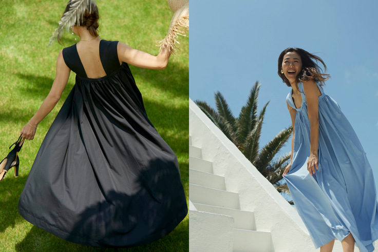夏の暑い日も1枚で何〜に考えずに被ってもらう涼しい締め付けなしの楽ちんドレス!なのですが、大人が街に着ても露出しすぎやラフすぎに見えないように、安定感のあるあるエレガントな太めのストラップ!