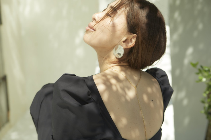 ●ウエストにはゴムのアジャスター付きで、ウエストを絞ればエレガントに、緩めればリラックスした雰囲気で楽しめます