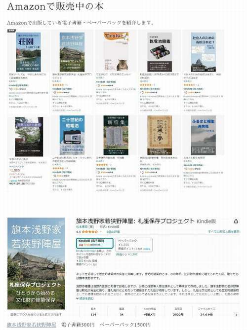 つくりためた写真集などは、昨年から、Amazonの電子書籍やペーパーバックにして販売しています。 動画もつくっていて、日本史関係は、日本史オンライン講座・若狭野陣屋の保存運動は、チャンネルあいおいというチャンネルで公開しています。高校時代は、出版部で学校新聞をつくっていました。