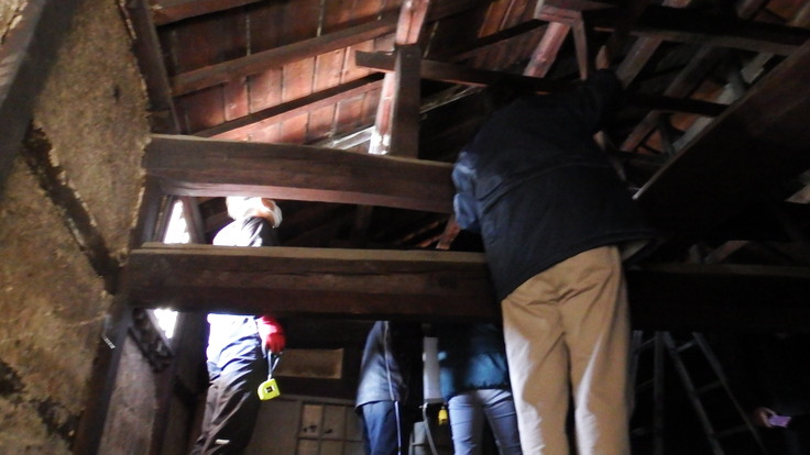 文化財の保存の経験の豊富な方が何名も「安政よりも古いように思う」と言われていて、今日は屋根の構造を中心に徹底調査しました。