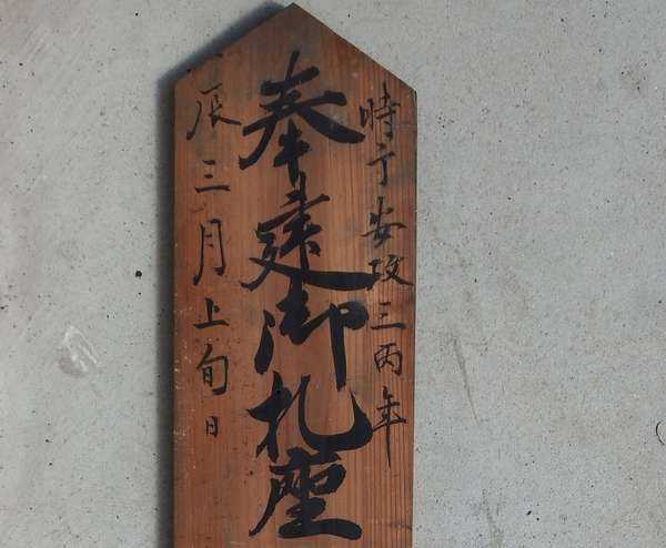 12日の徹底調査で札座の棟札を発見しました。これには安政3年という年号と建て替えという文字があります。大坂天王寺屋が文政の藩札発行にかかわり、一旦撤退して、安政初め藩札業務に復帰したとも書いてあります。