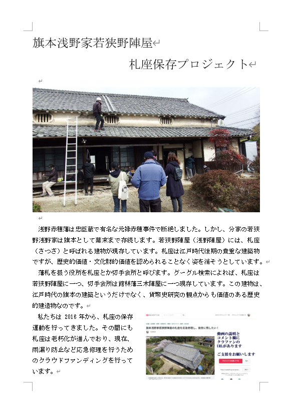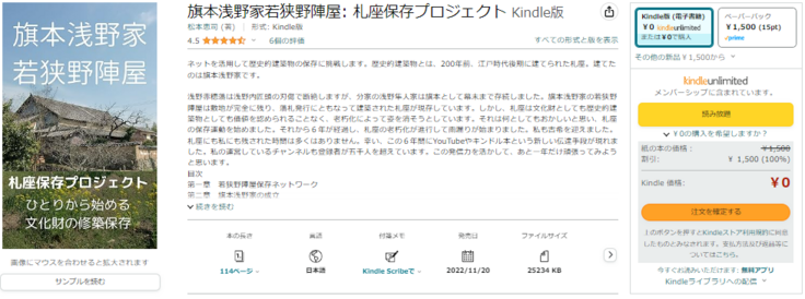 2022年11月に発行した若狭野陣屋札座保存プロジェクトを紹介する電子書籍です。今、無料キャンペーンを行っています。