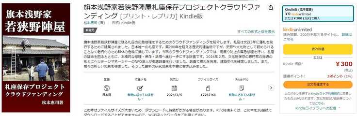 Amazonで旗本浅野家若狭野陣屋札座保存プロジェクトの書籍を出版しました。旧版は2022年出版でしたが、2023年2月と2024年2月にヘリテージマネージャーによる札座の調査が行われ、棟札の発見をはじめとしていろいろなことが判明しました。そういう知見を加えて新版を書きました。なお、3月7日17時から電子書籍の無料キャンペーンをします。ペーパーバックも近いうちに発売予定です。