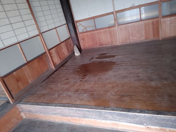 3月23日の写真です。この週は雨が連続していたこともあって、玄関を入ったところに雨漏りがありました。早速、応急修理の手配をしました。