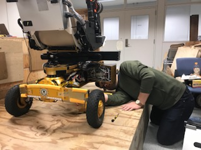 私たちの電動車いすは、研究開発中のものですので、日々の改良、丁寧なメンテナンスが必要です。一つ一つのパーツをしっかりと確認し、問題がないように整備します。例えば、シートや天板、車輪のねじ1本の閉まり具合についても、1つ1つチェックしています。このように、チームメンバー同士が協力し合い、日々のメンテナンスを通して、私たちの機体を最高の状態に仕上げる努力をしています。
