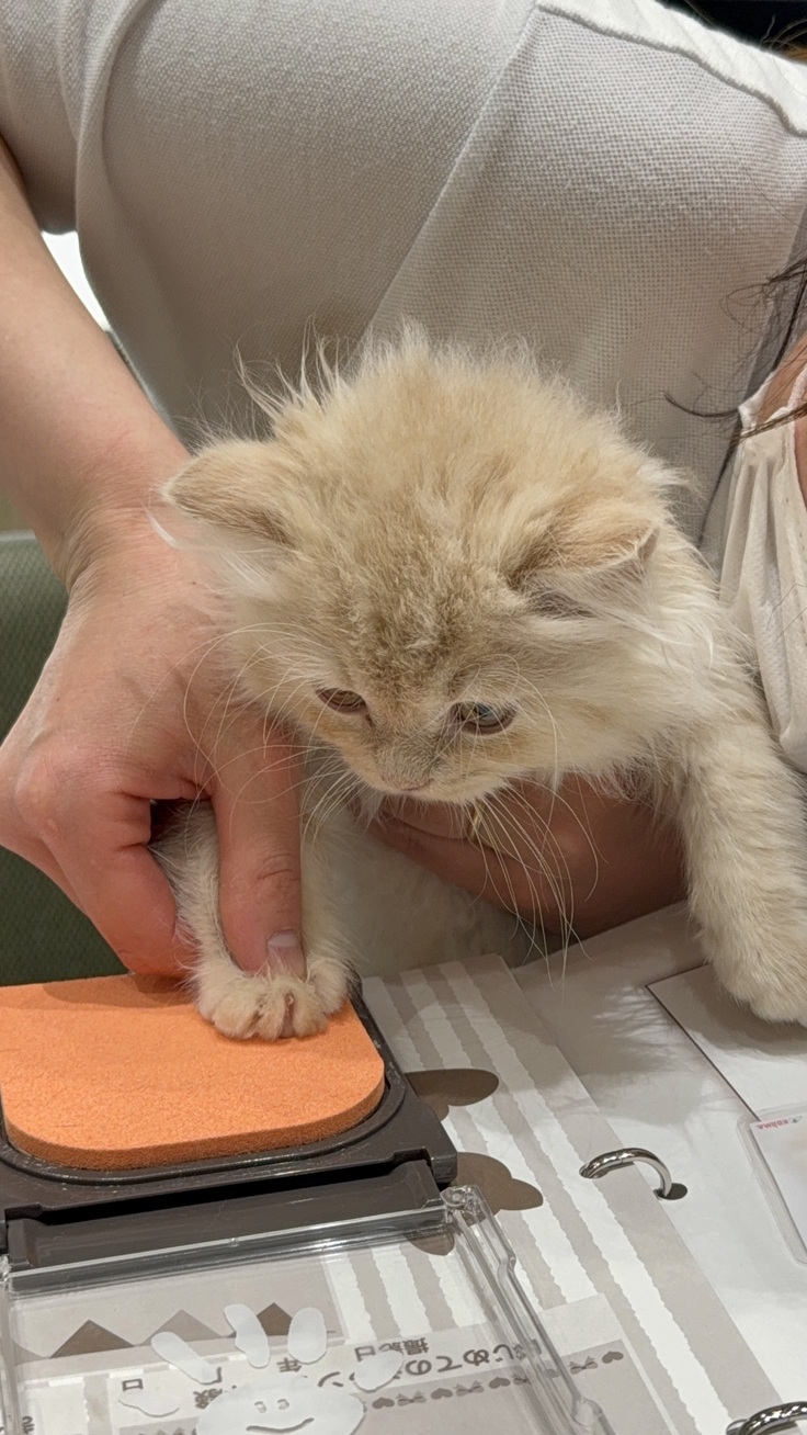 ↑ペットショップで契約時に肉球スタンプを押されてる和空です🐾