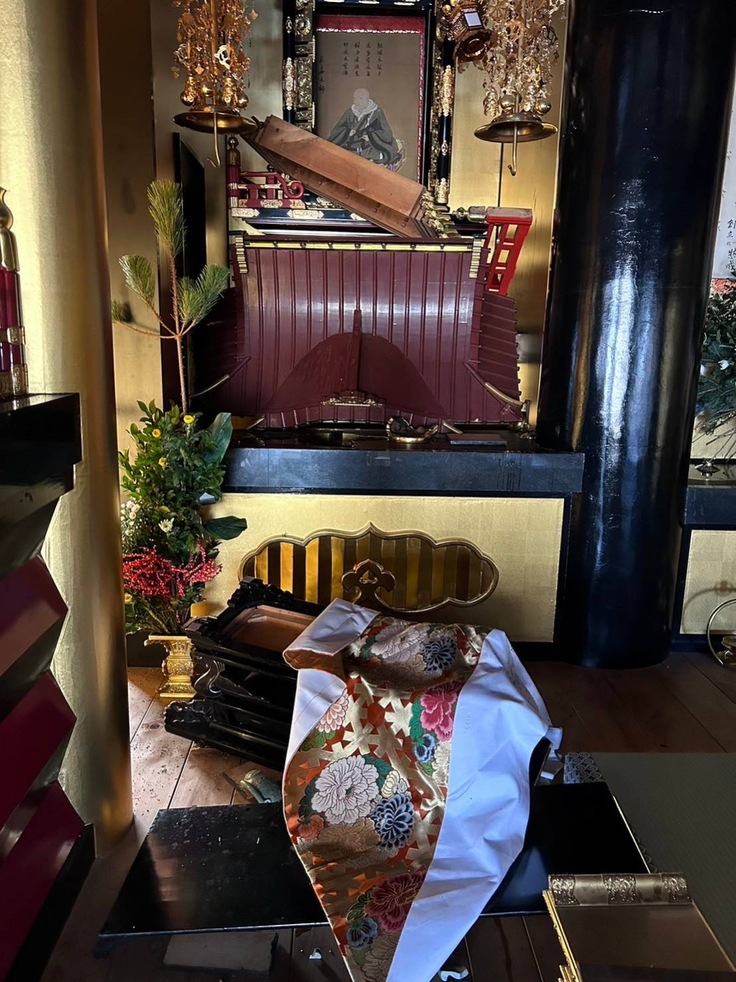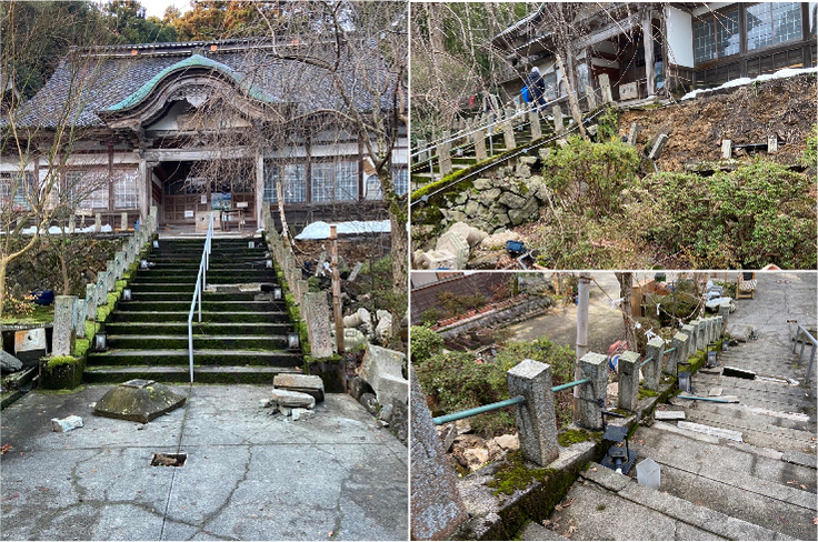 御便殿を守る寺の境内・本堂などが地震により損傷を受け、お客様をおもてなしできない状況になっています。