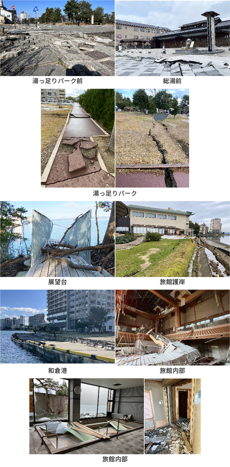 旅館や温泉施設、商店、海沿いの護岸、サッカー・テニス合宿で利用されるグラウンドなど、建物・施設損害であくまで概算ですが1000億円以上の被害が出ていると言われています。また、本年1月~2月の宿泊見込みが約77000人でしたが、地震の影響で100%キャンセルとなり、約20億円の売り上げが損失しました。3月、4月もキャンセルが相次いでいます。