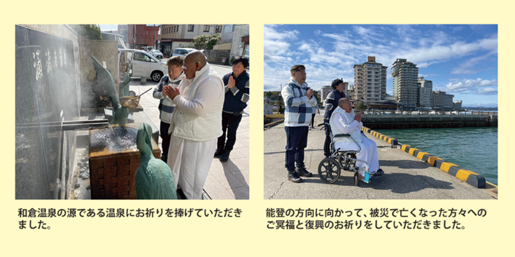 和倉温泉をめぐり、被災の状況を見て心を痛まれていましたが、「不幸なことがあっても必ず幸せは訪れるので、皆さん頑張ってください」と励ましのお言葉をいただきました。