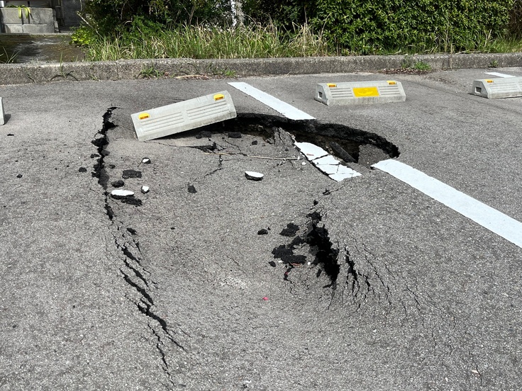 また、少しずつ復旧が進んでいますが、仮復旧した道路の再度ひび割れや地盤の下りが大きくなったりと日が経つにつれて逆に酷くなっている部分もあり、状況はいわば一進一退であります