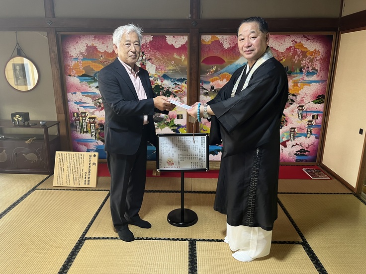 6月24日、青林寺・信行寺へ皆様からいただいたご支援の一部とご支援いただいた方のお名前を和倉温泉観光協会 多田会長よりお渡ししました。
