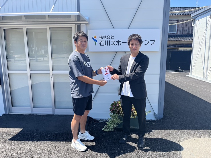 皆様からの貴重なご支援の一部は、7月25日(金)に本大会の主催である株式会社SPORTYへ和倉温泉観光協会 奥田協会長よりお渡しいたしましたことをご報告いたします。