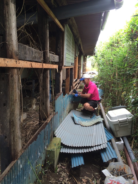 大工さんと一緒にボランティアさんがどんどん外壁のトタンを剥がしていき・・・