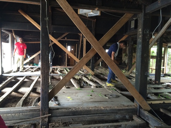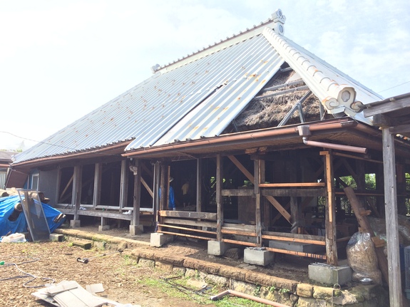 アルミサッシやトタン壁が無くなり、だーいぶ古民家らしくなってきました。笑