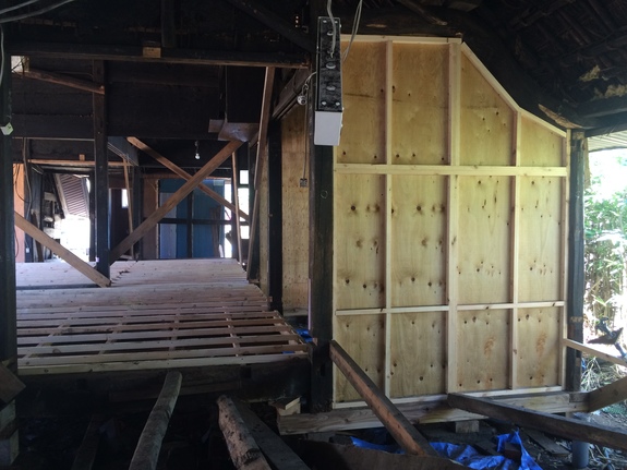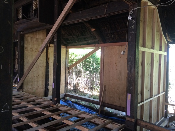 建物の歪み直しが終わったら、次は耐力壁の設置です。