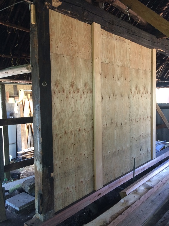 合板が片面しか貼られていないのは、この後の電気配線等の為です。