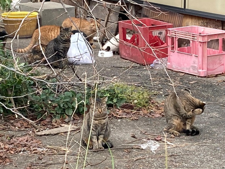 餌やりが行われており、20匹や30匹といった大規模な繁殖が進んでいるコロニーや、