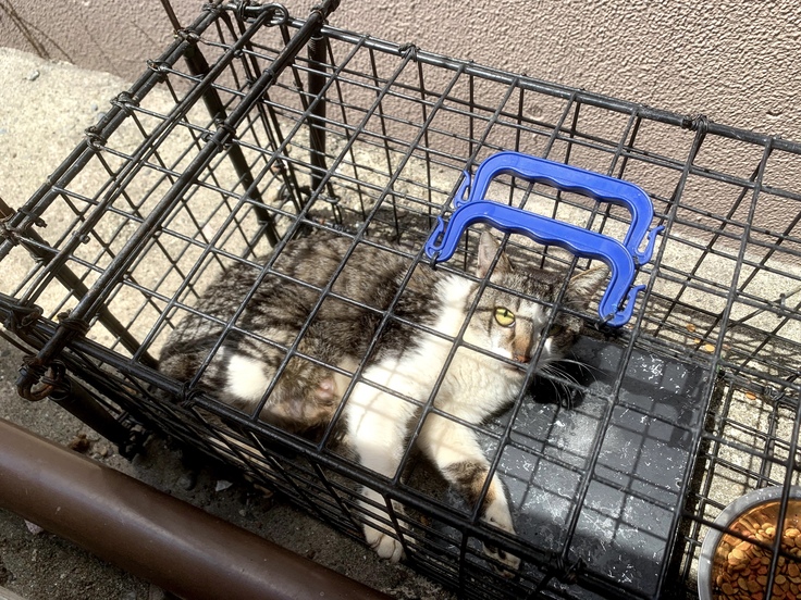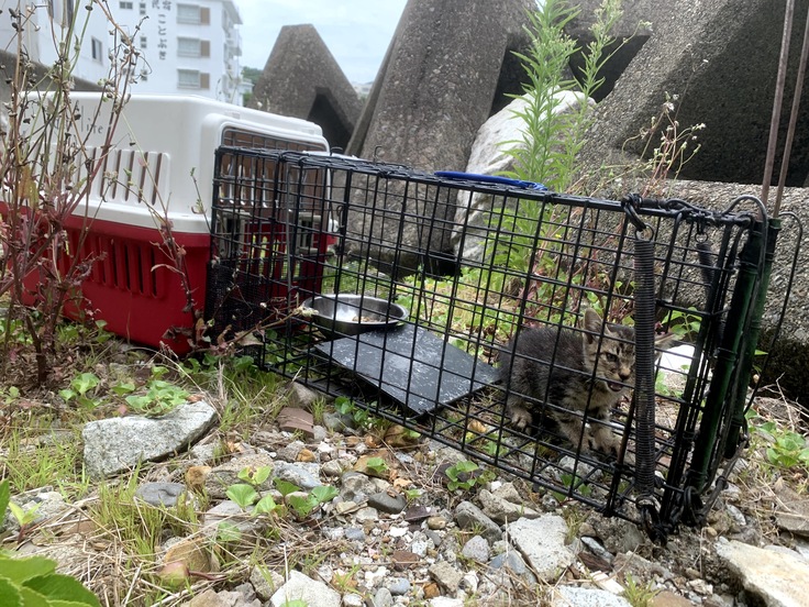 仔猫なのにとても警戒心が強く、なかなか捕獲檻に入ってくれません。
