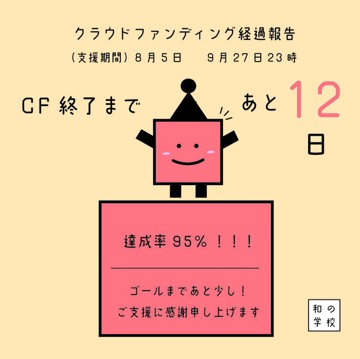 皆様からのあたたかいご支援のおかげで、クラウドファンディングも達成率95%を超えてまいりました!