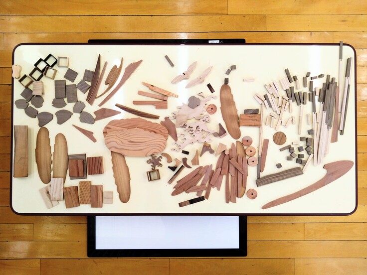 使用した素材は、「木工端材」(提供:川本光春)と「唐紙・和紙」(提供:静好堂中島)です。