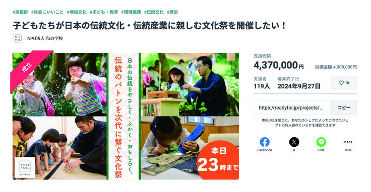 また、本活動報告は、ご支援いただいた皆さまとつながっている大切な場ですので、これからも活用させて頂きます。和の学校文化祭で計画している各プログラムの情報などを適宜アップして参りますので、どうぞご期待くださいませ。